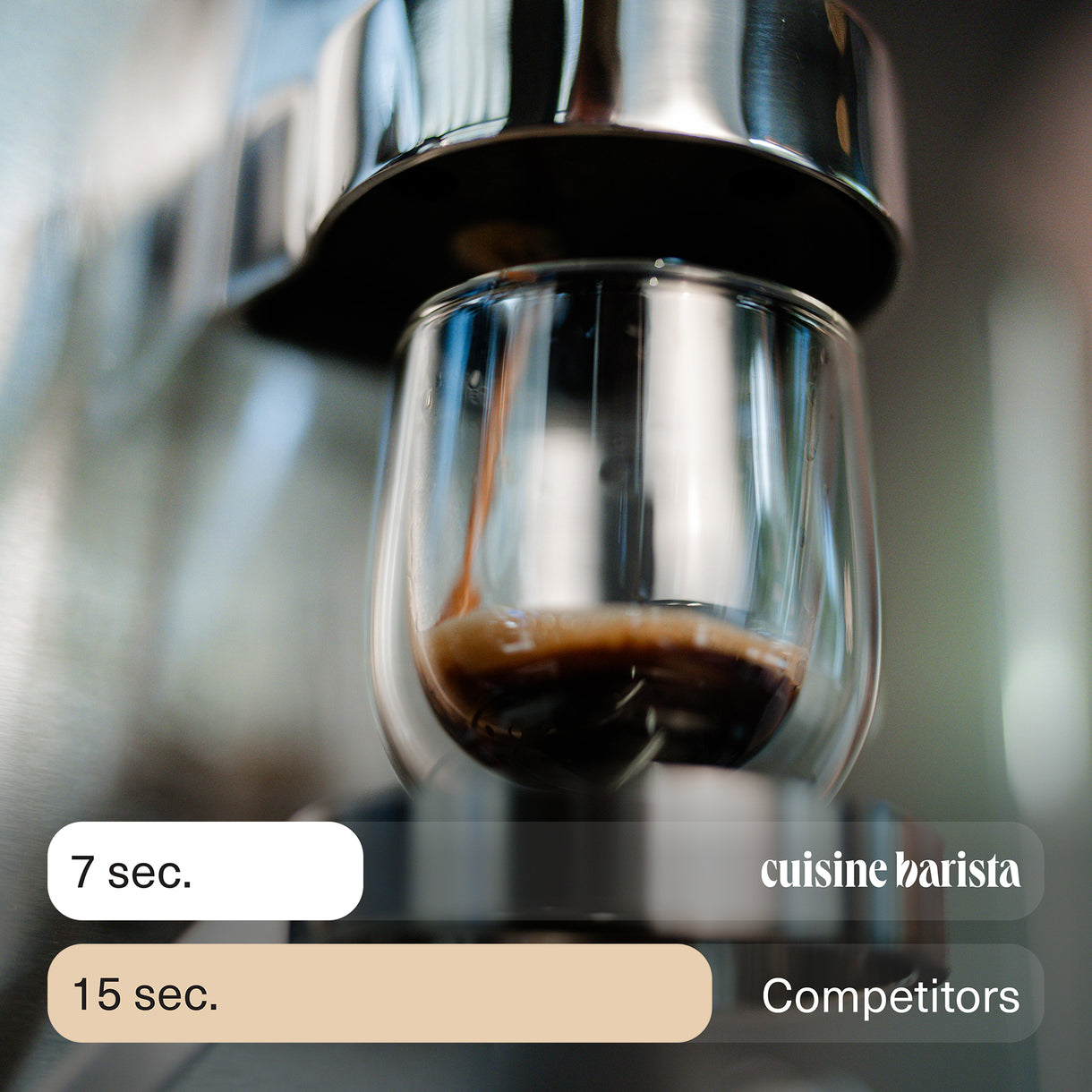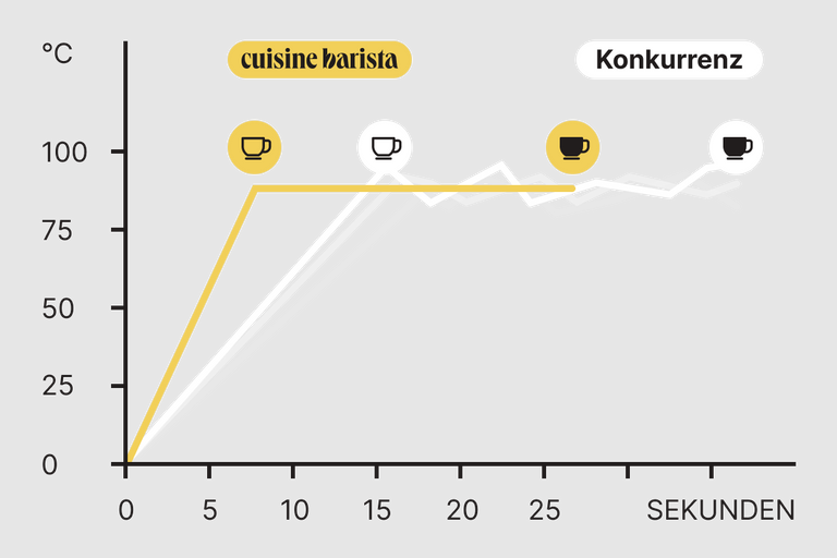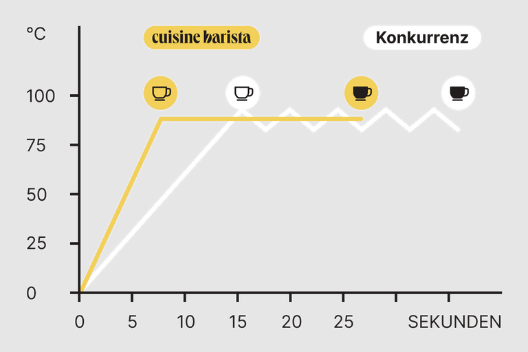 Alors que les machines à capsules conventionnelles mettent jusqu'à 20 secondes pour chauffer et ont souvent des températures fluctuantes, la machine Cuisine Barista est prête à l'emploi en seulement 7 secondes et garantit une température d'infusion stable - pour des résultats constants à chaque infusion.