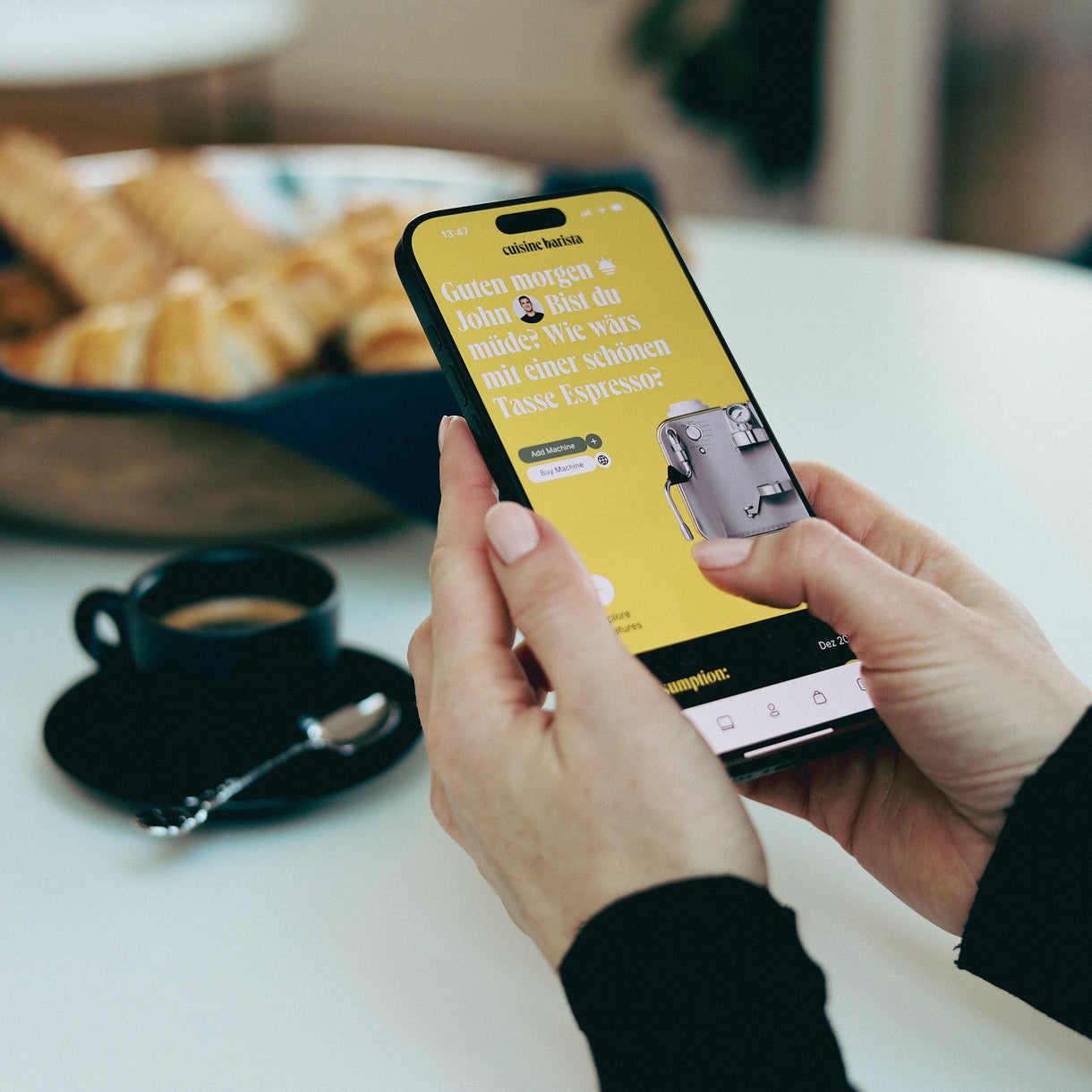Grâce à notre application, vous pouvez facilement acheter de nouvelles capsules Cuisine Barista et des accessoires tels que des pastilles de détartrage ou des filtres à eau pour votre machine à café. (Bien entendu, toutes les autres capsules compatibles avec Nespresso* peuvent également être utilisées).