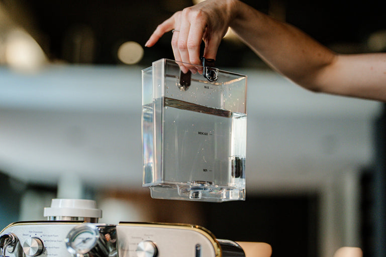 Pour ce faire, nous avons mis en place un système de rinçage qui calcule automatiquement le temps de détartrage et accompagne le processus via notre application. De plus, chaque machine Cuisine Barista est équipée d'un filtre à eau.